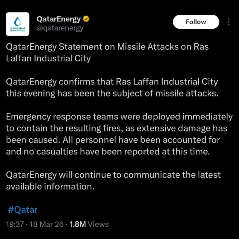 🇶🇦 Qatar Energyn mukaan Ras Laffanilla laajat vahingot. 🔴 @DDGeopolitics