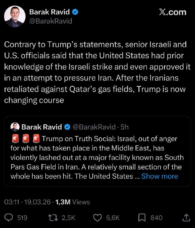 🇮🇱🇺🇸🇮🇷 #Israel sanoo Trumpin valehtelevan. Hän tiesi iskusta Iranin kaasulaitoksiin... mutta muutti kurssiaan Iranin hyökättyä Qatariin. 🔗 Liity seuraamme | @MyLordBebo