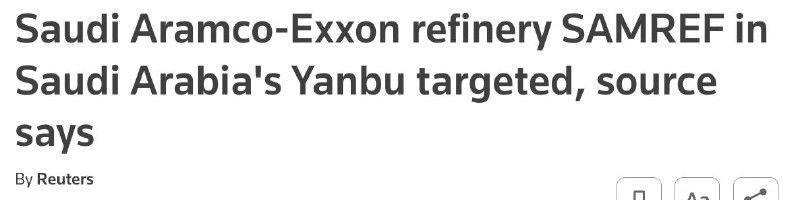 #Iran iski Persianlahden öljyntoimitusten kannalta tärkeään laitokseen, - Reuters Saudi-Arabian Yanbun satamakaupungissa sijaitsevaan SAMREF-öljynjalostamoon hyökättiin. Hormuzinsalmen ollessa suljettuna se on edelleen ainoa Persianlahden maiden
