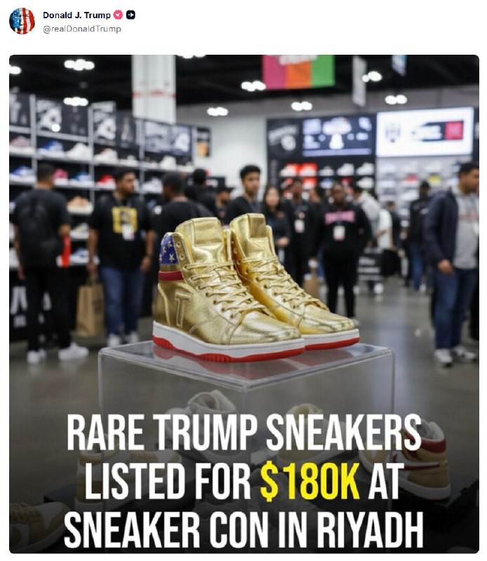 JUURI NYT - julkaisi kuvan "harvinaisista" 180 000 dollarin Trump-lenkkareista, jotka ovat myynnissä Saudi-Arabian Sneaker Conissa. @disclosetv