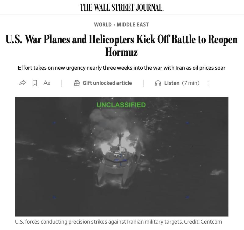 WSJ: Yhdysvaltain sotakoneet ja -helikopterit aloittavat taistelun Hormuzinsalmen avaamiseksi uudelleen Yhdysvallat on lähettänyt A-10 Warthog -hävittäjiä ja Apache