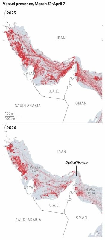 🇮🇷 Vessel presence in the Persian Gulf March 31 to April 7, 2025 vs 2026. 🔴 | Socials | Donate | Advertising
