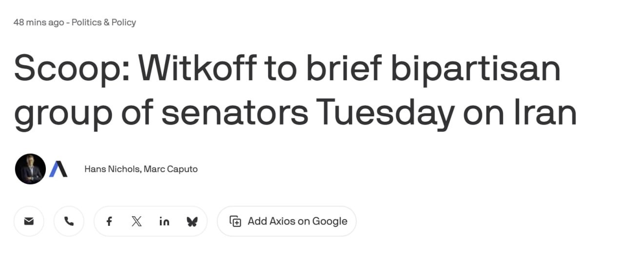 Axios reports that Steve Witkoff will hold a private briefing for a small group of senators from both parties on on Tuesday.The briefing was organized by Senator Joni Ernst (Republican from Iowa), Chairman of the Senate Armed Services Subco...