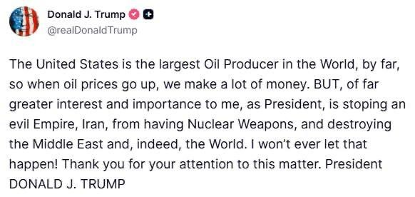 It’s funny how Trump’s post collapses under its own logic. In one breath, he boasts that the United States is the world’s largest oil producer and implies that higher oil prices mean “we ...