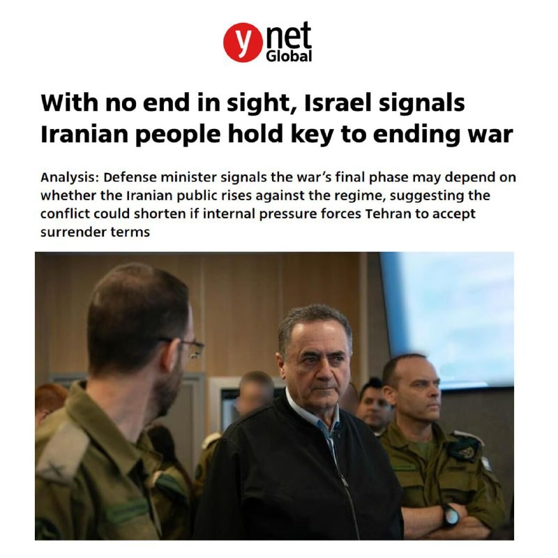 ⭕️Yedioth Ahronoth: Now that the prospect of war with is uncertain, [Israel’s] defense minister says the Iranian people must rise up against the regime and decide the outcome of the war😂⭕️