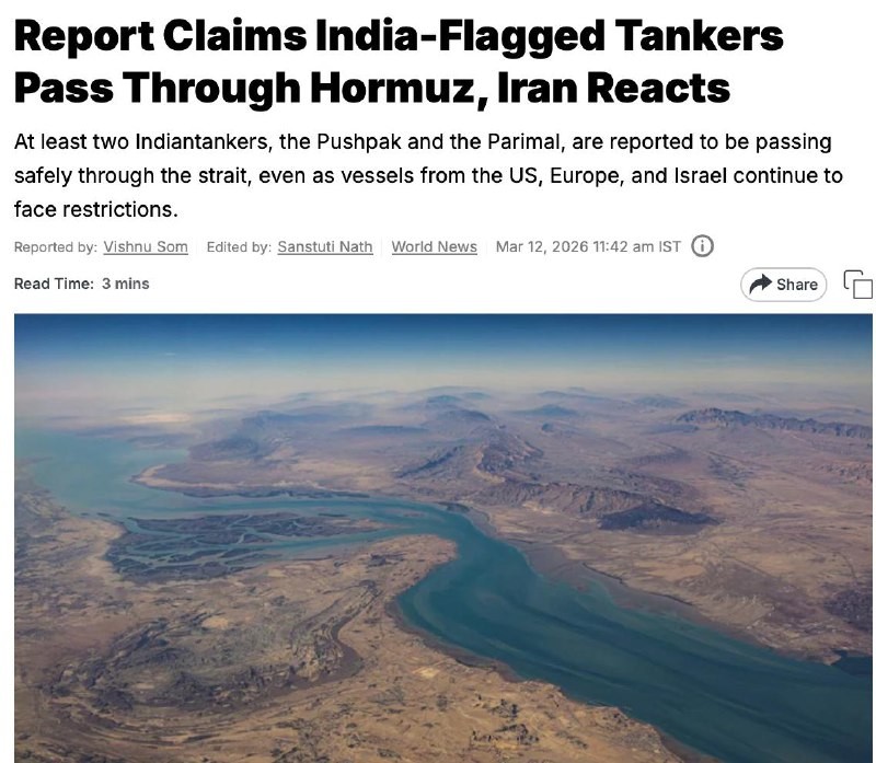 #Iran did not allow Indian tankers to pass through the Strait of Hormuz Iran did not give official permission to tankers under the Indian flag to pass through the Strait of Hormuz. This was reported by a Reuters source. Earlier, Indian media – I...