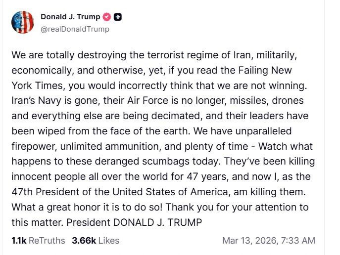 "They've been killing innocent people around the world for 47 years, and now, as the 47th President of the United States, I'm killing them. What a great honor!" Donald lashed out at and reiterated that the United States is "completel...