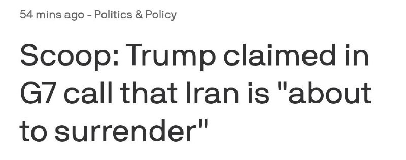 🇺🇸🇮🇷 told G7 leaders in a virtual meeting Wednesday that is "about to surrender," according to three officials from G7 countries briefed on the contents of the call. - Axios