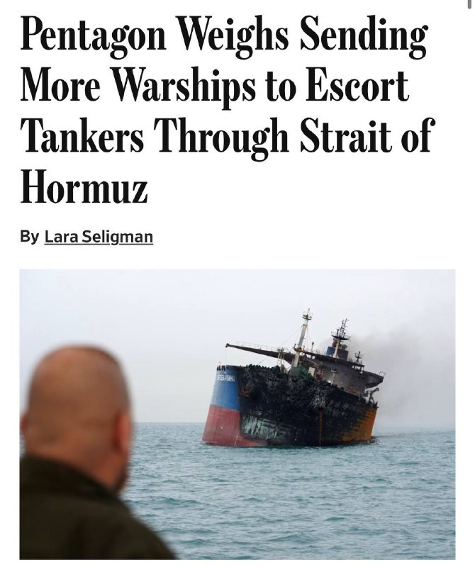 🇺🇸⚡️🇮🇷 — Wall Street Journal, citing sources: The Pentagon is considering sending additional warships to escort oil tankers through the Strait of Hormuz. 🔴 @alsaa_plus_EN