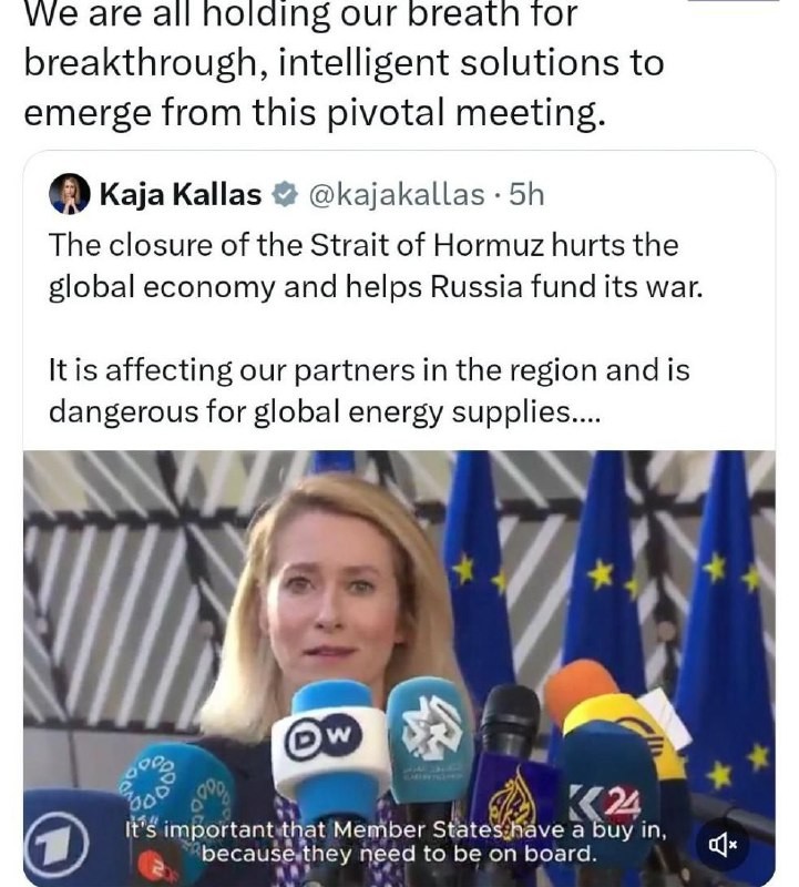 🇷🇺🇪🇺 Dmitriev commented on Kallas's words about the #EU foreign ministers' discussion of sending military ships to the Strait of Hormuz.
