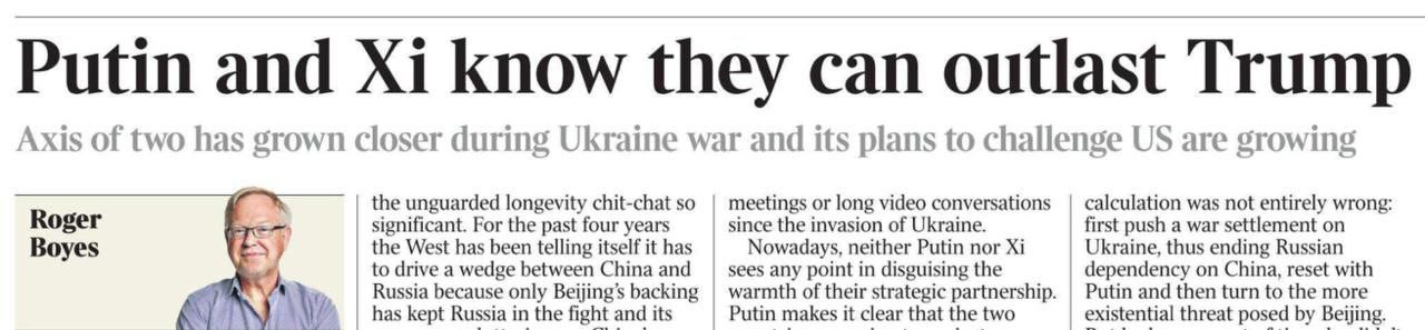 #Putin and Xi know they can survive Trump.With this reassuring headline, Roger Boyes, chief foreign affairs columnist for The Times, publishes his wonderful "analysis