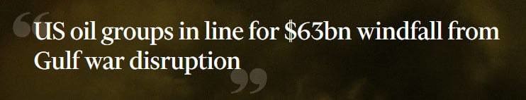 American oil companies can earn additional $63BN from the US-Iran war, making them among its main beneficiaries — Financial Times "US companies will earn an additional $5 billion in profit...