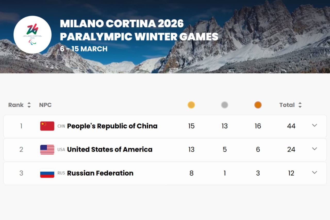 #Russian Paralympic Committee:#TeamRussia finishes THIRD in the medal standings at the 2026 Paralympic Games!Despite a team of just six athletes and one guide, our Paralympians delivered a phenomenal performance.12 MEDALS:8 gold1 silver3 bronzeIn...