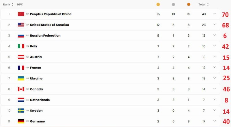 🇷🇺Russia took the 3rd place in the medal standings of the Paralympics with 6 participating athletes🇷🇺 For comparison, there were 70 participants from and 68 from the United States.