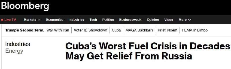 "#Russian oil tankers are heading to Cuba," Bloomberg reports (citing Kpler data). And according to this data, the first tanker, the Anatoly Kolodkin (loaded with 730,000 barrels of oil), is expected to arrive by the end of this month. Cubans