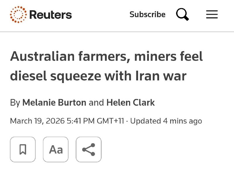 Tight domestic diesel supplies due to limited stockpiles and far-flung distribution networks are rattling Australia's farming and mining sectors, the main ​users of the transport fuel, as the war disrupts global oil supplies.
