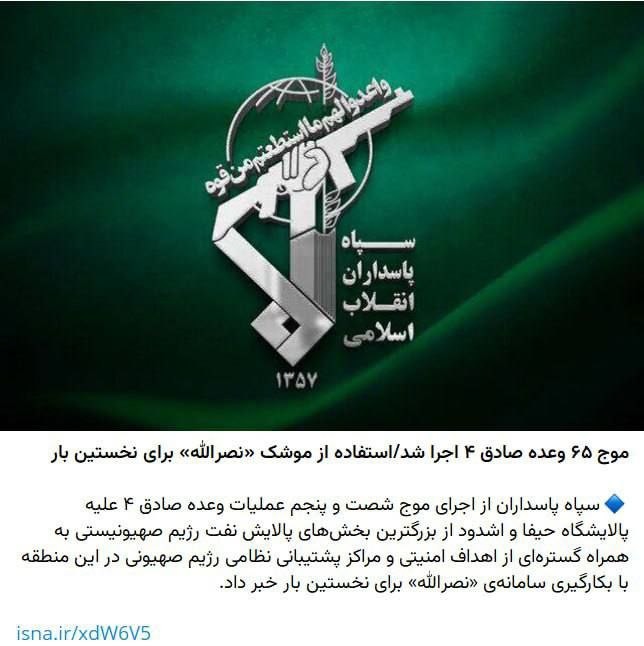 Israel's Haifa was hit by a "Nasrallah" missile Well, the IRGC reports that the oil refinery in Haifa was hit by a new "Nasrallah" missile, named after the deceased leader of "Hezbollah", which was used by in combat operations for the first