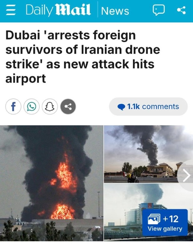 ⚡️⚠️🤕🇦🇪 Foreign nationals who survived an Iranian strike in Dubai have been arrested after they sent photos of the aftermath of the blast to their loved ones to prove they were safe.