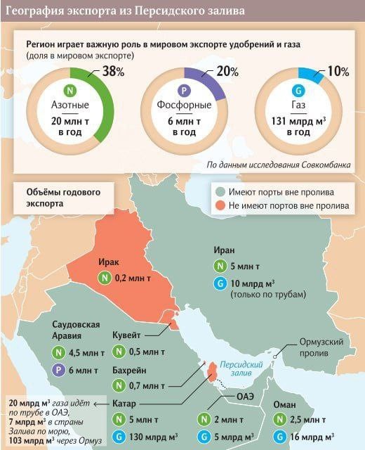 ⚡️⚠️🍞🗺🇮🇷 The closure of the Strait of Hormuz has stopped 50% of global fertilizer exports, which could disrupt the sowing campaign and provoke a food crisis in #Europe and Asia. Prices for nitrogen additives have increased by 30%