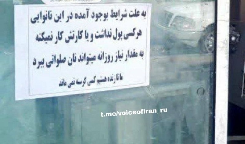 ⚡️❤️🍞🇮🇷 Writing on a bakery window in : ❗️Anyone who has no money or whose card isn't working can get their daily bread requirement for free. As long as we live, no one will go hungry.