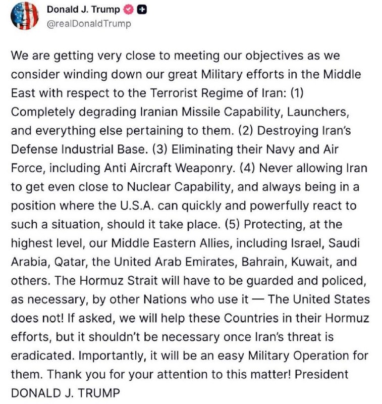 stated that he is not interested in the Strait of Hormuz."We have already defeated . As for the Strait of Hormuz - we don't need it, we don't use it," he said.At the same time, he stated that he does not want a ceasefire.