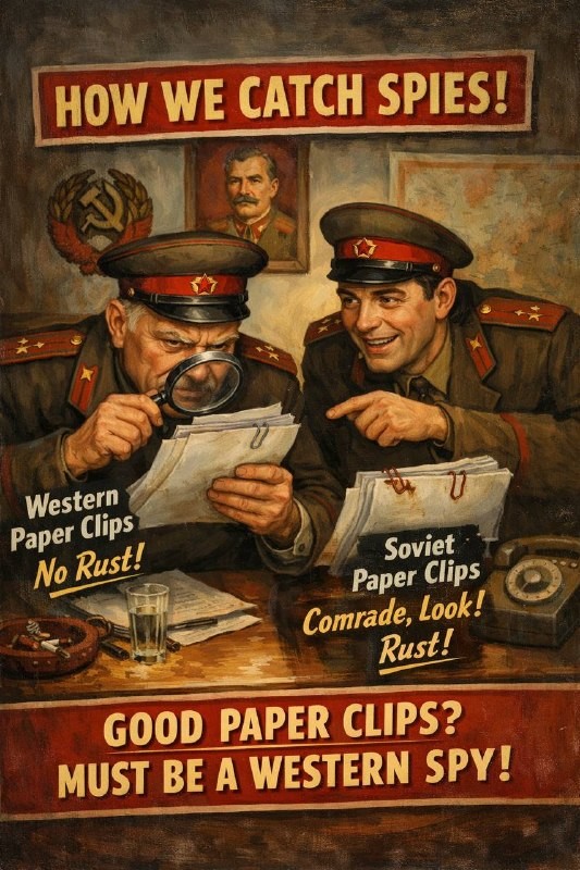 One of the KGB’s way of discovering infiltration was paper clips. When intelligence agents would pass western documents to the Soviets they used higher quality paper clips that didn’t leave rust stains on the papers.