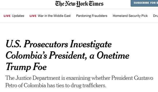 The New York Times: New York prosecutors are investigating the Colombian president's ties to drug traffickers The American edition of The New York Times reports that federal prosecutors in Manhattan and Brooklyn are investigating Colombian President