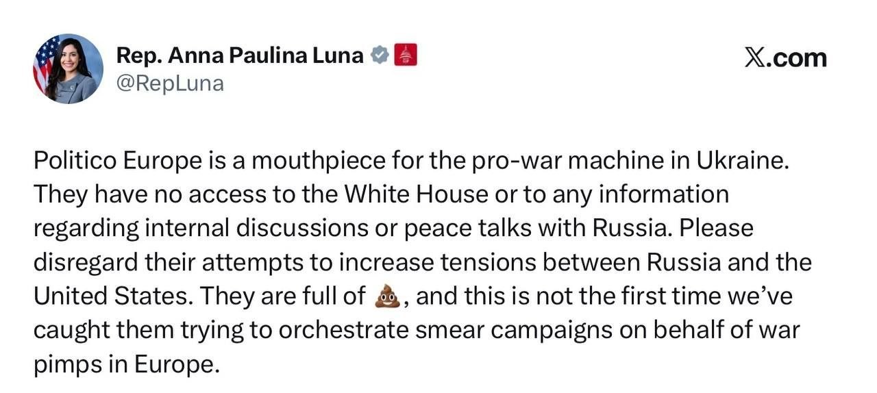 'Politico is a mouthpiece for the pro-war MACHINE in ' — Rep. Luna'They are full of '