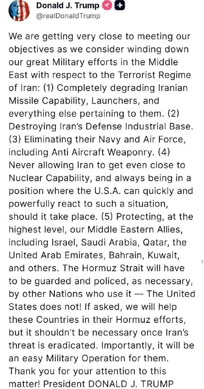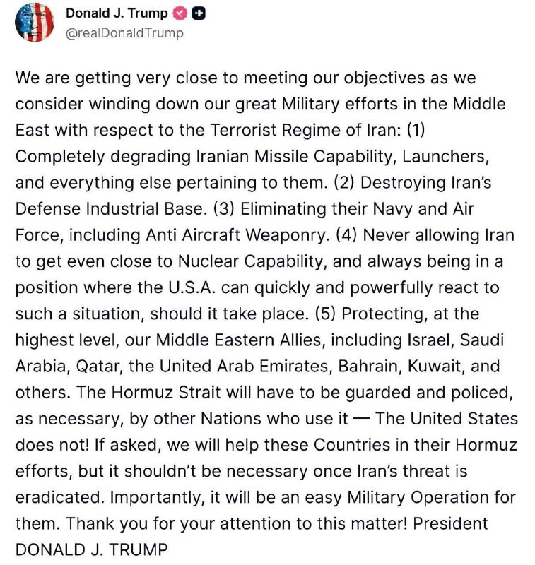 Fwd from @ Trump exits the war? Donald #Trump suddenly announced that he is considering winding down the war with #Iran — on his Truth Social network
