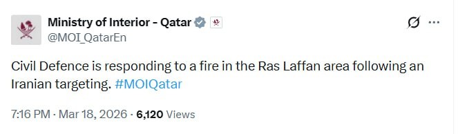 ⚡️🚀🔥🔥🇮🇷🇶🇦 A fire broke out at the Ras Laffan oil refinery in Qatar after an Iranian attack. 📍Iran promised, #Iran delivered.