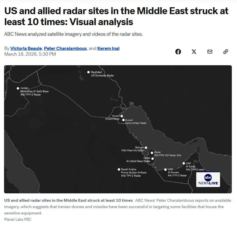 In the first weeks of the war with #Iran, Iranian forces and their proxies repeatedly attacked key missile defense infrastructure of the United States and its allies.Satellite images and verified footage analyzed by ABC News show that at least 10
