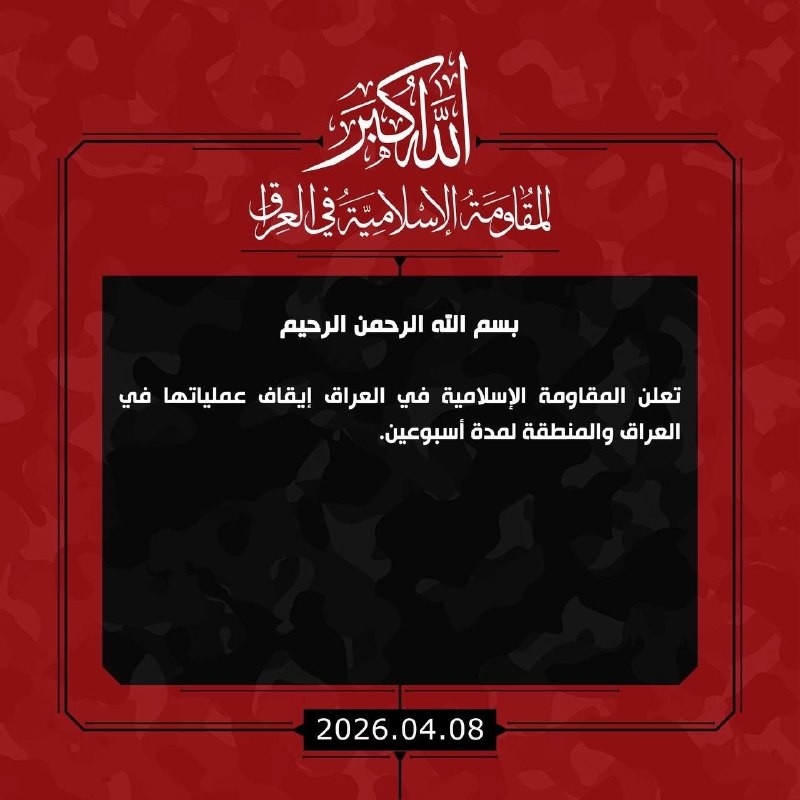 ✔️ Ислямската съпротива в Ирак обявява двуседмично спиране на операциите си в Ирак и региона https://t.me/svezhesti/160956 Aбонирайте се за: 📱 InfoDefenseBULGARIA 📱 InfoDefense