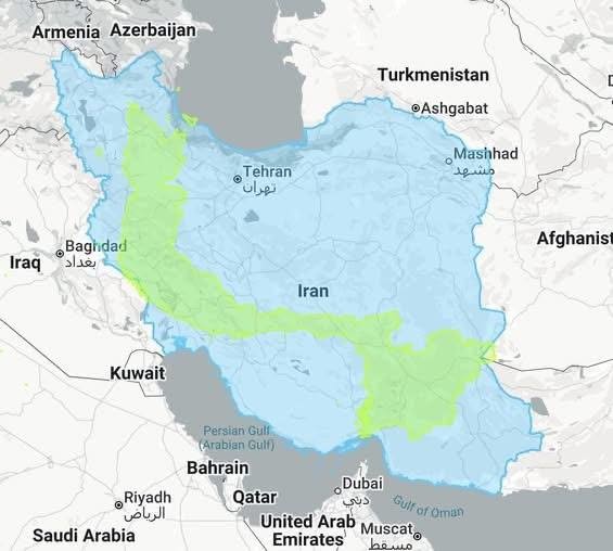 Irán térképén - zöld színnel ábrázolva - Vietnam területe, ahonnan az amerikaiak, csúcslétszámban, 543 ezer fős hadsereg birtokában is alig tudták kimenekülni #Trump most azt tervezi