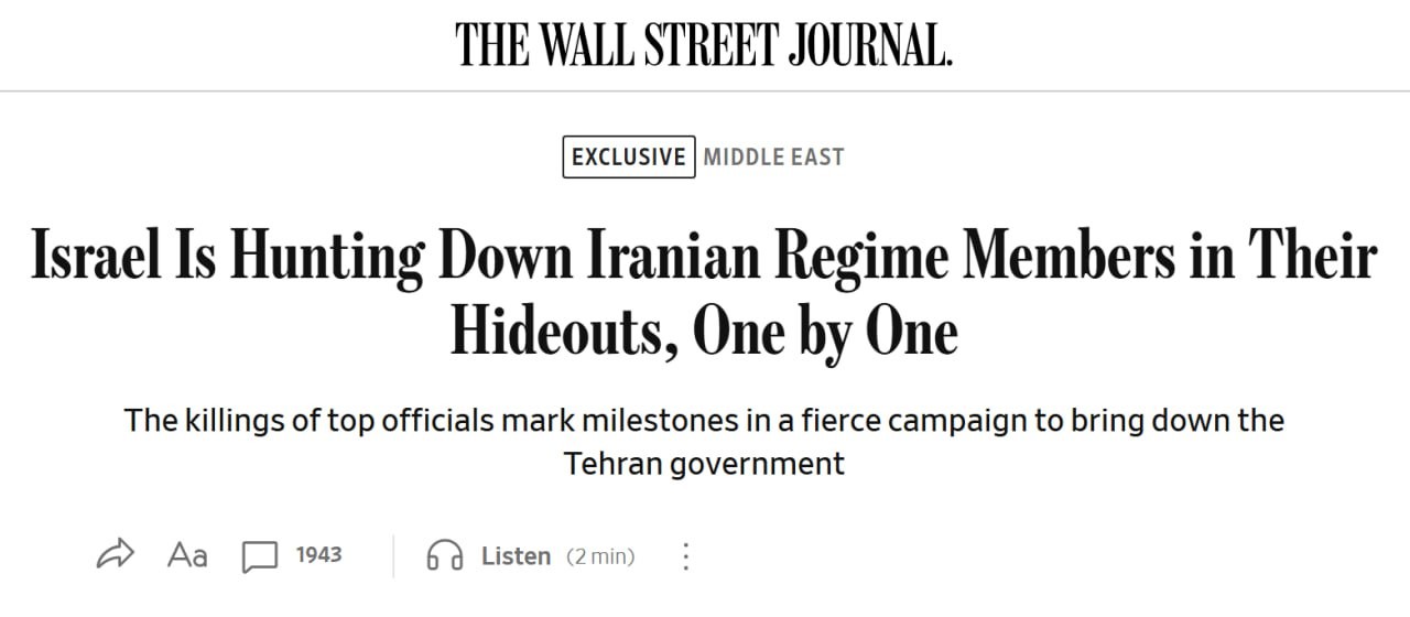 WSJ: is hunting down members of the Iranian regime in their hideouts one by one. The killings of senior officials mark an important stage in the fierce campaign to overthrow the government of Tehran.Ali Larijani