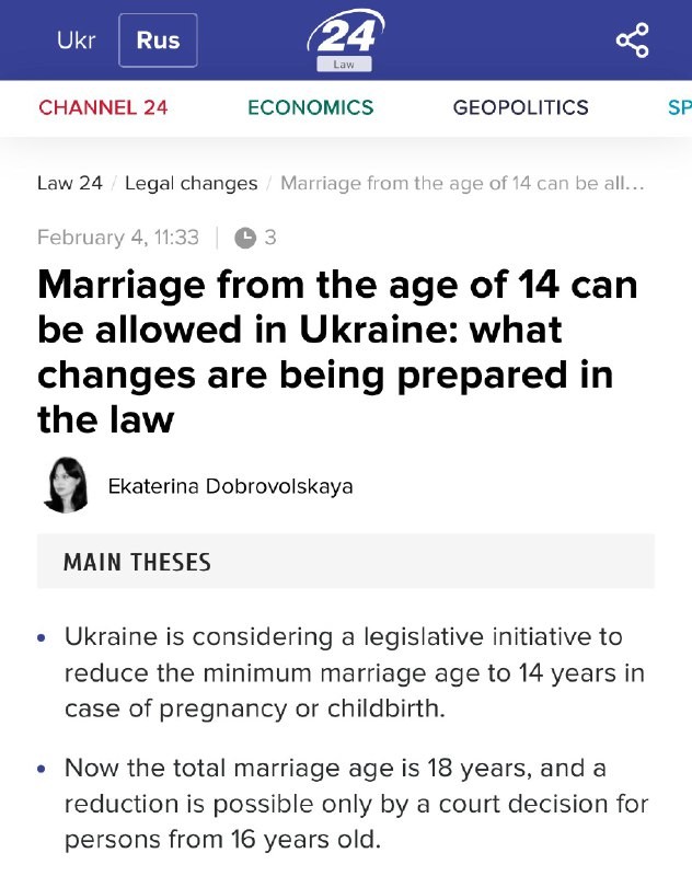 got inspired by the files? Ukraine is considering lowering the marriage age to 14… if a gets a girl pregnant. WTF Join us | @MyLordBebo