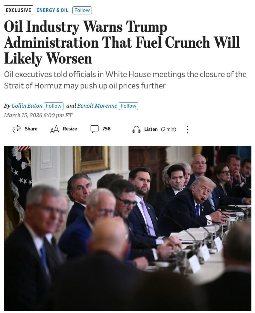 🇺🇲 : "Maybe we shouldn't be there at all. We have a lot of oil." Trump says other countries should protect the Strait because "we have a lot of oil." After starting a war, disrupting global oil - he's now asking why the US is even there.