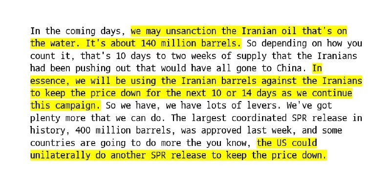 Treasury Secretary, Scott Bessent, told Fox Business that the U.S. may lift some #sanctions on Iranian oil to help countries import oil. This is a massive betrayal to the American allies in the GCC who, due to the actions of the U.S.