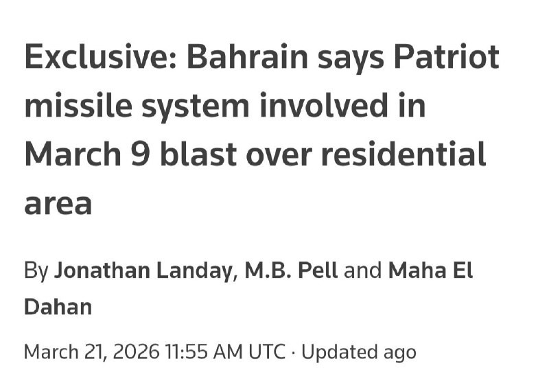 🇮🇷🇧🇭🇺🇸⚡Bahrain officially admitted: The Patriot interceptor missile was the cause of the explosion in residential areas of Bahrain on March 9.