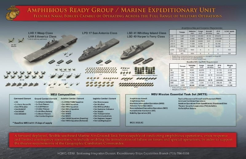 /IRAN - US Marines Expeditionary Unit (MEU) Deployed to Middle East The US deployment of the Tripoli and its support ships provides the following capabilities: 1. Amphibious/helicopter/tilt-rotor landing operations; 2. Anti-shipping operations - ...