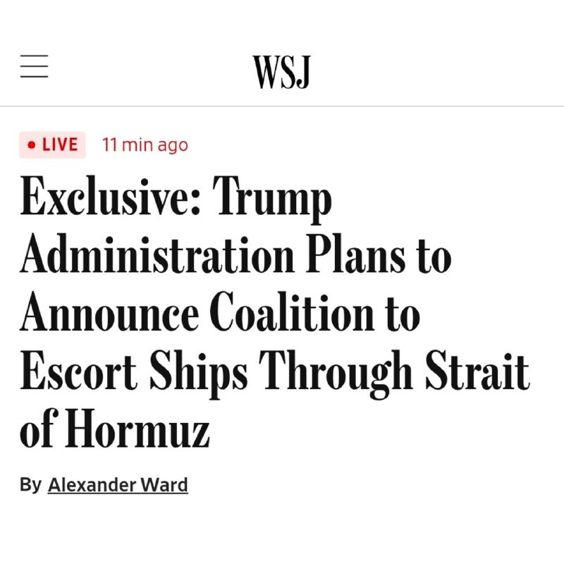 The WSJ: The #Trump administration is expected to announce that several countries have agreed to join a coalition to escort ships through the corridor along the Iranian coast. Officials are still discussing whether the operation would begin befo...