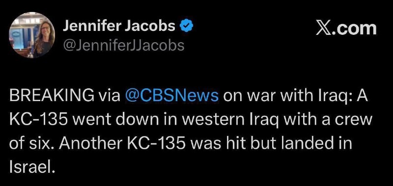 🇺🇸 The CBS correspondent says that the other KC-135 aircraft "came under hostile fire, but it landed in Israel." She later deleted her tweet. But to late we already made printscreens 😁