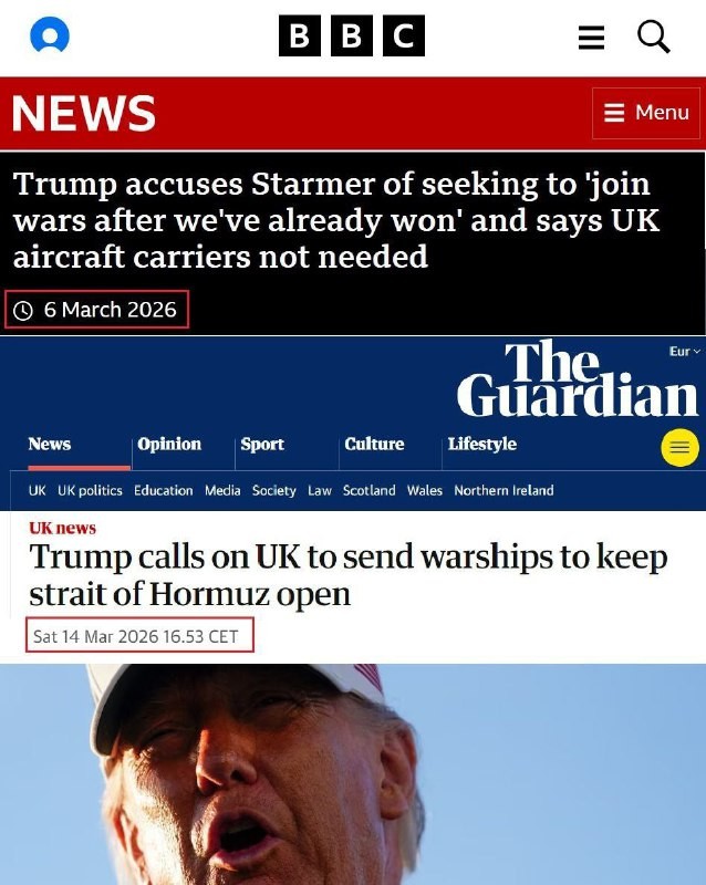 #Trump accused #Starmer he wanted to join a war "we've already won." "There's no need for British aircraft carriers." — March 6 Trump called on the #UK to send warships to secure shipping ...