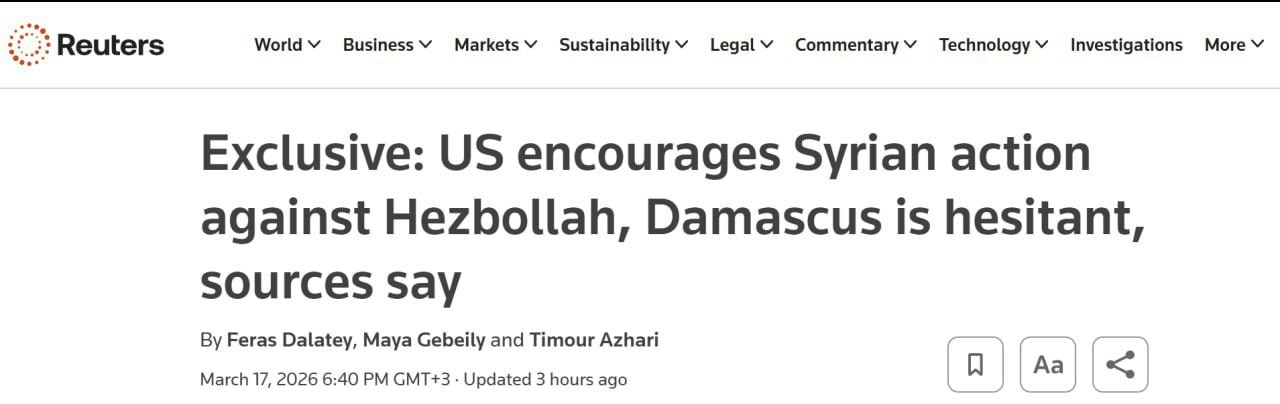 The Reuters news agency, citing sources, reports that the United States is calling on #Syria to act against Hezbollah, while Damascus is showing indecision.The United States has called on Syria to consider sending troops to eastern Lebanon to help