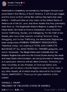 #Trump stated that he has recognized the current authorities of #Venezuela as a foreign terrorist organization.