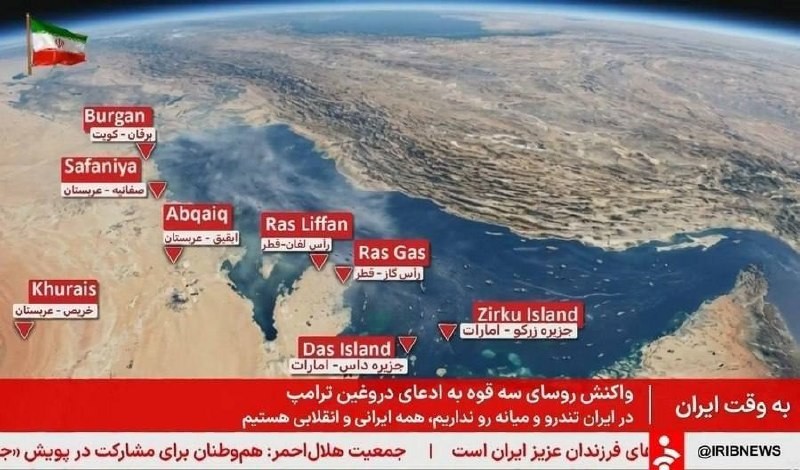 Teherán zverejnil zoznam cieľov, ktoré by boli napadnuté v prípade útoku na iránske energetické zariadenia. Saudská Arábia: Abqaiq — ropná rafinéria. Safaniya, Khurais — zariadenia na ťažbu ropy.