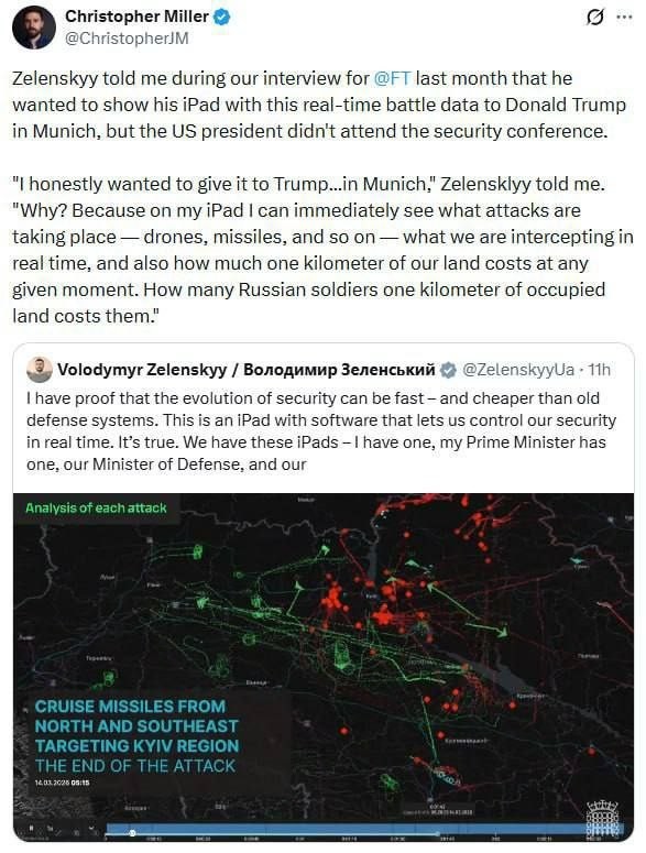 #Zelensky wanted to give #Trump an iPad that displays real-time battlefield situations, but Trump didn't attend the Munich conference — Financial Times I guess Trump probably has a slightly