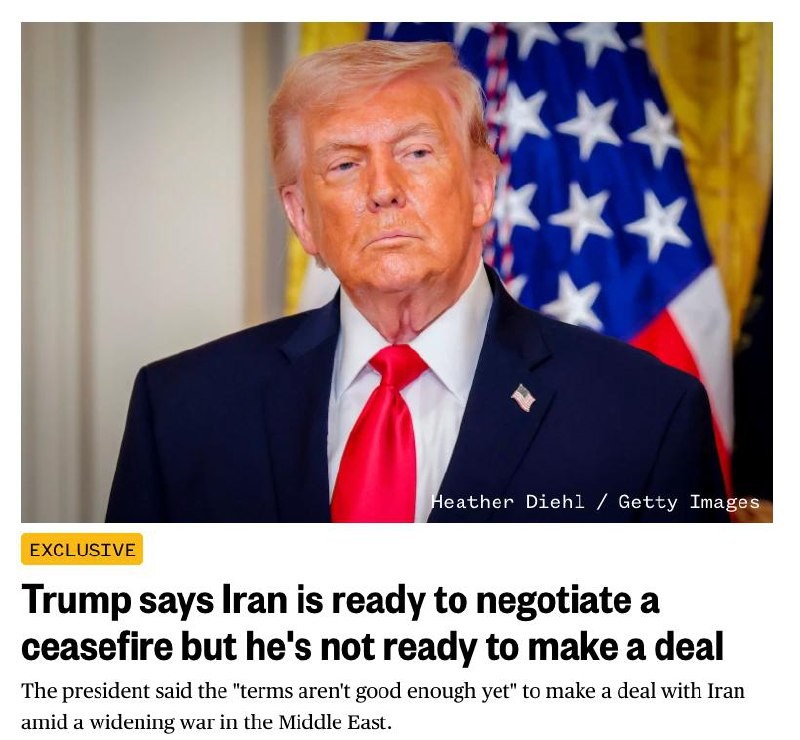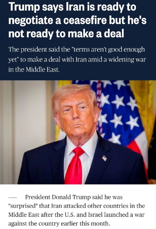 NBS: #Trump claims #Iran is open to a ceasefire but the "terms aren't good enough yet" He was also "surprised" that Iran attacked other countries in the Middle East after US-Israeli strike...