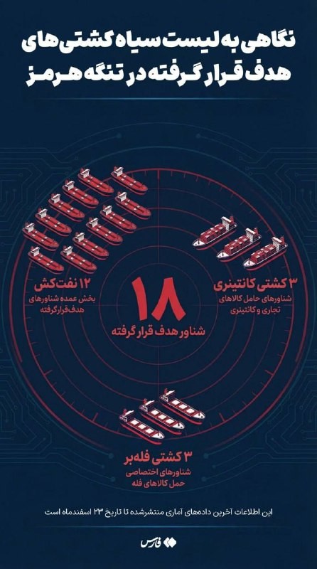 🇮🇷| So far, since the war, #Iran has struck 18 vessels that ignored warnings at the Strait of Hormuz. • 12 oil tankers • 3 container ships • 3 bulk carriers @FotrosResistancee