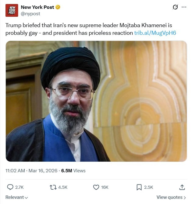 The NY Post is promoting the idea that the new leader of #Iran is gay. ✨ The war isn't going quite how they envisioned and this is the best they could come up with... ⚡️Two Majors