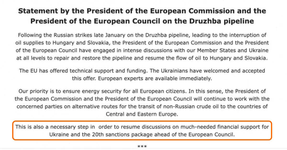 The EC removed the loan and #sanctions against #Russia from the terms of the repair of the oil pipeline by UkraineThe European Commission has removed the paragraph on financial support for #Ukraine and the 20th package of sanctions against Russia